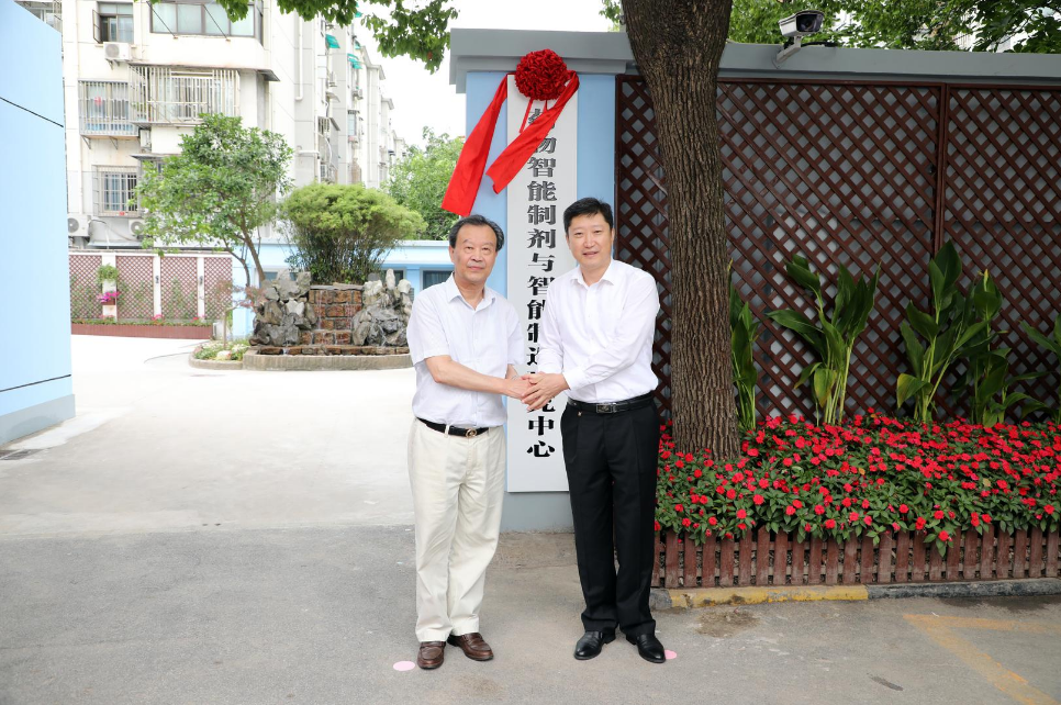 李江书记和侯惠民院士在药物智能制剂与智能制造研究中心现场线下揭幕。