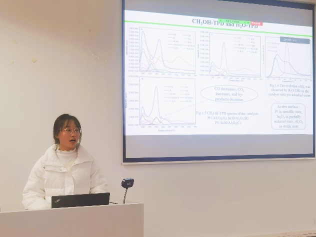 首先是韩国蔚山大学的Seongbin Ga教授作了题为“Machine Learning-based Guidelines for Material Selection in Membrane Process”的专题报告,博士后Tran Van Tam、K. S. S. V. Prasad Reddy和Hamidreza Soltani Panah分别就各自的研究领域进行了分享,并分别进行了题为“Scalable fabrication of NP-doped graphene quantum dots/ graphene aerogel composites as trifunctional electrocatalysts for free-binder and free-metal Zn−air batteries and overall water splitting”、“First-Principles Elucidation of Ammonia Oxidation Reaction Mechanism on Ptn/CeO2 catalysts”和“Binodal and Spinodal Curves of Ternary Systems Containing Lignin Using the NRTL and UNIQUAC Models”的学术分享。中韩双方参会的研究生们也积极汇报了在各自的研究领域取得的研究成果。期间,与会教师、员工就报告内容进行相应的提问,深入探讨双方目前研究方向的共同性与差异性,踊跃交流各自项目的研究原理、研究方法及研究过程中问题的解决等。