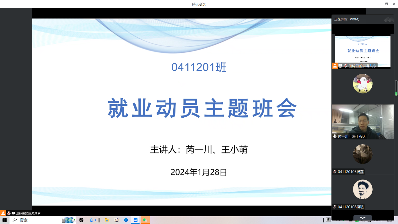 最后每位同学分享自己的毕业设计进度以及就业规划,已落实去向的同学向大家积极分享经验。通过此次交流,毕业班同学对自己的就业规划有了新的认识和思考,学会了用正确的态度面对就业形势,树立了就业信心、确定近期目标方向。