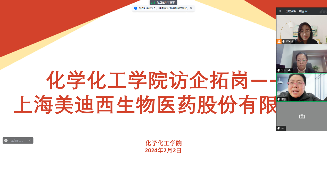 在活动开展期间,公司积极对接企业,公司党委副书记秦颖老师、就业辅导员王小萌与上海美迪西生物医药股份有限公司校招负责人线上沟通,介绍公司生源情况和目前公司毕业生就业情况,并向用人单位咨询岗位需求岗位数量,向单位推荐更多优秀人才。