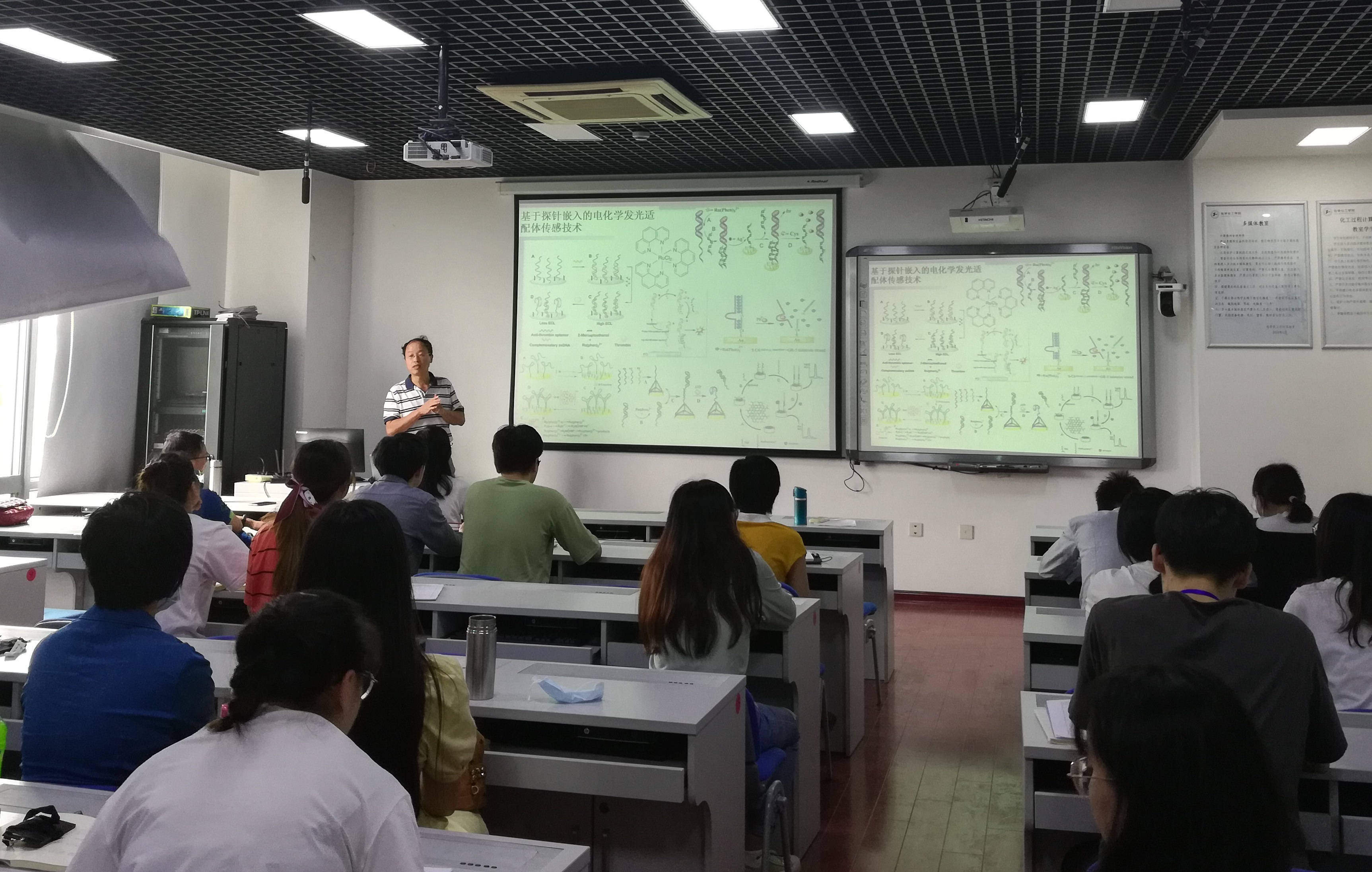 8月28日下午15时,南开大学尹学博教授应公司威廉希尔官网的邀请,在实训中心3414作了关于功能金属有机骨架的设计及化学测量应用学术报告。威廉希尔官网张敏教授代表公司,对尹雪博教授的报告表示欢迎,并主持报告会。尹学博教授由自己的研究生涯出发,将毛细管电泳、碳点、金属有机框架(MOFs)荧光等与同学们进行了详细的讲述和深入的探讨,先后阐述了有关预富集、电化学检测、单金属有机框架中的旋转限制发射和天线效应的相关内容。最后尹老师又展示了其团队最新的科研成果,介绍了MOFs功能金属有机骨架材料的设计,并用于高灵敏、特异性化学传感,实现功能金属有机骨架的成像及诊疗一体化等生物医学应用研究。