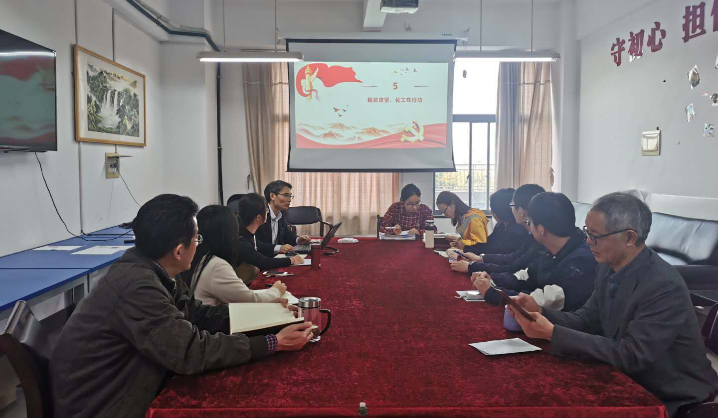 饶品华经理以公司深入贯彻国家关于打赢脱贫攻坚战的决策部署的三个行动案例为切入点向大家介绍了公司助力于脱贫攻坚的努力和决心。他分享了公司党员教师王锦成同志团队研制开发了绿色环保高分子土壤调理剂,通过科技研发对接农业发展,助力农业增产增收的事例;通过校企合作,实现科研创新、技术开发和人才培养等方面的优势互补、促进共同进步的事例;公司响应党中央振兴新疆的重大举措,选派党员教师张文启同志和青年教师王润锴援疆,为喀什大学给排水工程专业的建设和提升做出很大贡献的事例;公司对口帮扶公司六盘水师范公司案例。号召环境工程专业教工党支部全体党员同志在今后的工作中发挥党员先锋模范作用,坚定理想信念,拼搏奋斗,为学科发展和脱贫攻坚做出更大贡献。