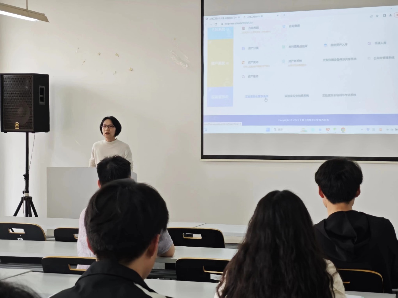 会议首先由保卫处安全办高致宇老师就校园安全与实验室安全的相关内容开展了培训。高志宇老师就实验室及校园突发事件应急的注意事项进行了宣讲,以安全生产的角度做了重点提示,并提醒师生要不断提升安全意识,以安全生产的理念倡导“不伤害他人、不被他人伤害、不被他物伤害”。