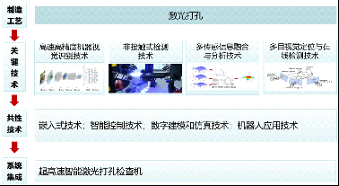 该方向拟通过高速高精度机器视觉识别技术、非接触式检测技术、多传感信息融合与分析技术、多目视觉定位与在线检测技术的集成和深度融合,通过系统优化及集成创新,提升整机的运行速率、检测功能、加工精度,同时持续升级提高产能,降低成本(技术路线见图3)。如第十代机由最初的60/分提升至3600/分的打孔速度,打孔精度进一步提升至100 um。我们将持续推进,提升整机的感知、分析、推理、决策、控制的智能化水平,提升产能,降低成本,提高成品率,保持国际领先水平。