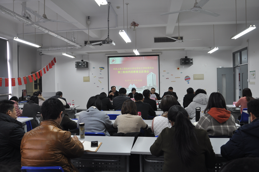 12月29日,中共威廉希尔官网委员会第二轮校内巡察反馈会在实训楼4405召开。校巡察工作领导小组成员、校巡察工作办公室主任段海霞同志,第二巡察组组长柴晓冬同志,副组长徐建华同志,巡察组成员以及威廉希尔官网全体党政领导、科职级干部、教师代表参加了会议。会议由化学化工公司党委书记宋勤健主持。