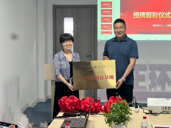 王润锴与威正测试总经理陈进宇共同为“威廉希尔官网-上海威正测试技术有限公司产学合作教育基地”揭牌。