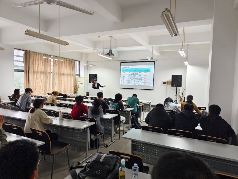 在宣讲会上,主讲人详细介绍了达威公司的基本信息及招聘政策,并分享了多位员工成长的感人故事。通过此次交流会,同学们对达威的招聘政策、待遇以及人才培养体系有了更深刻的了解。同学们积极提问,认真聆听,和宣讲人进行了深入的交流,宣讲会结束后,多位同学也积极递交了简历,并参与了现场面试。
