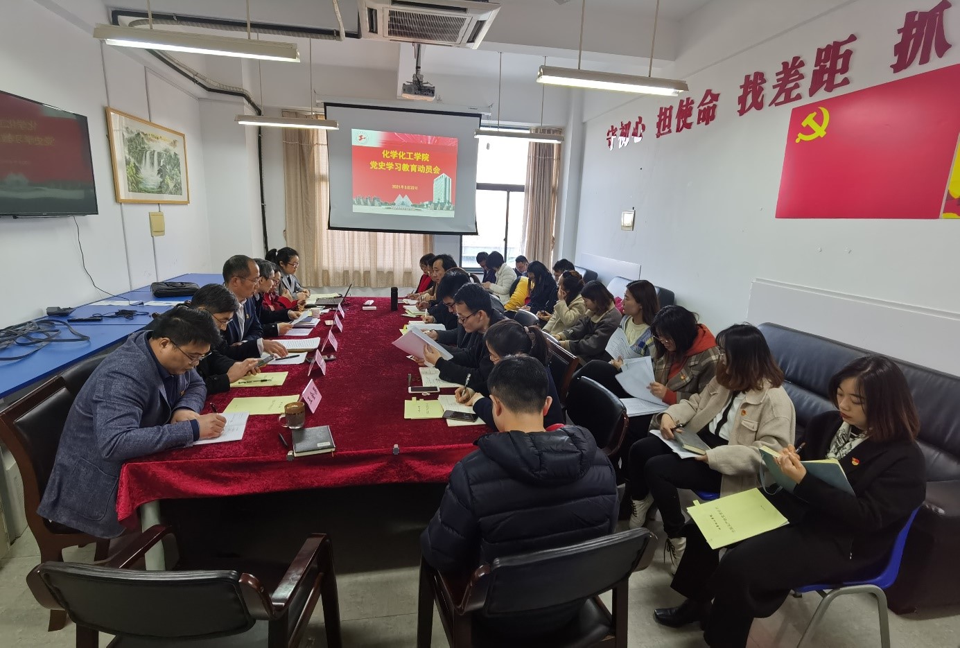 3月22日下午,化学化工公司党委召开党史学习教育动员会,深入学习贯彻习近平总书记在党史学习教育动员大会上的重要讲话精神,认真落实上级党组织有关部署要求,动员各党支部和全体党员学党史、悟思想、办实事、开新局,继承和发扬党的光荣传统和优良作风,为公司公司的事业发展添砖加瓦,以优异成绩向党的百年华诞献礼。公司党政班子成员、各党支部书记、系室主任等参加会议,会议由公司党委副书记、经理饶品华主持。