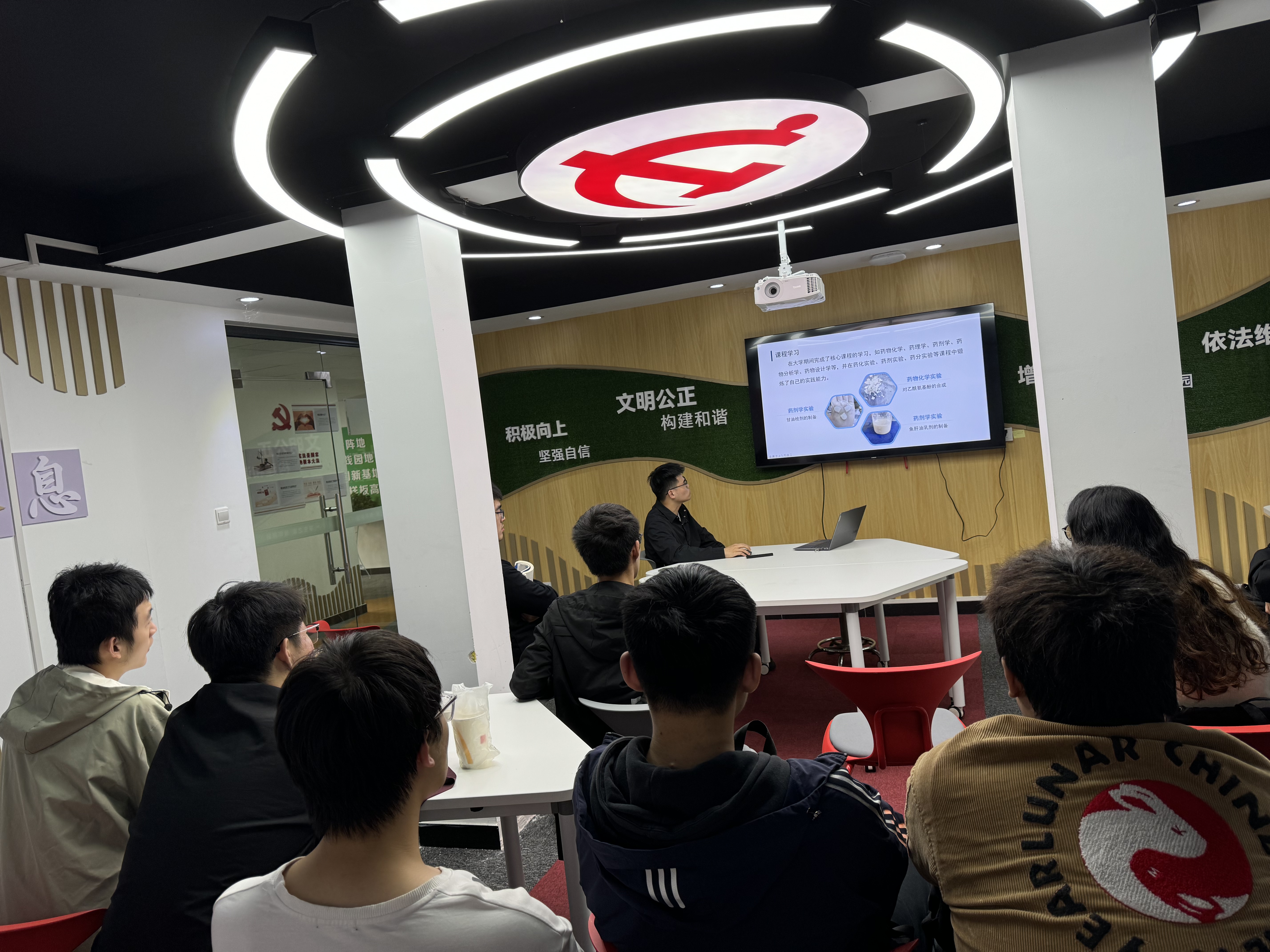 首先,黄子仪学姐着重分享了自己的择校过程以及英语和政治的复习安排,尤其是在英语单词复习方面提出了具体建议。她强调,择校不仅要考虑公司的综合实力和专业排名,更要结合自身的兴趣。同时,她提醒大家合理利用网络资源,多了解目标院校的招生政策和导师的研究方向等信息。随后,蒋蒙学长以“考研适不适合我”为主题展开分享,结合身边的实例,讨论了是否考研、个人备考方案的确定以及备考时间的分配等问题。他特别指出,备考过程中要保持平和的心态,合理安排时间,并坚持自己的选择,热爱自己的目标。最后,卞文杰学长分享了自己的面试经历,提醒大家在本科阶段除了理论课程的学习,还应关注个人学术能力和实验能力的提升。三位学长学姐也向在场的学弟学妹们送上了寄语,希望大家能够顺利考上心仪的公司。