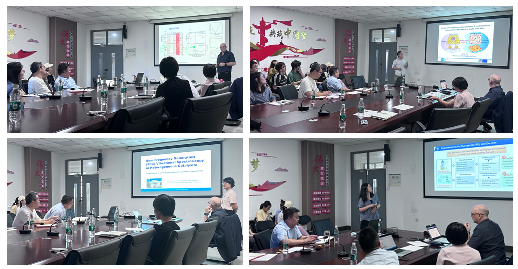 李霞博士以“Sum Frequency Generation (SFG) Vibrational Spectroscopy in Heterogeneous Catalysis: CO Adsorption on Ir(111) single crystal and supported Pt nanoparticles”为题,给我们分享了和频振动光谱(SFG)在催化体系中探测固-气和气-液界面上吸附物的分子取向、构象和排列的应用。史俊杰博士以“Design and synthesis robust catalysts: A study trip from nanoparticulate catalyst to single atom alloy”为题,给我们分享了其在多相催化剂设计中所做的优秀工作。杨靖霞老师和石峰老师也分别介绍了他们的近期工作,与三位专家就学术问题进行了深入沟通,获得了宝贵的意见。