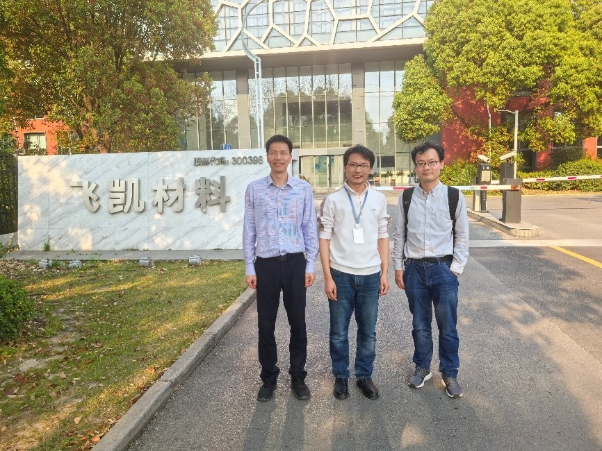 在走访过程中,老师们听取了公司总经理黄锦海对公司情况和市场发展的介绍,参观了道奕化工和飞凯材料的OLED研发中心,并慰问了在该公司进行实习的同学。之后,双方在OLED和钙钛矿电池领域的科研合作方面进行了深入交流,并探讨了研究生合作培养、实习基地建设等方面的初步意向。