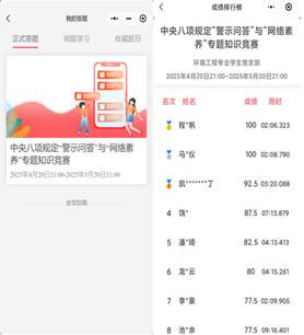 此次线上知识竞赛不仅是一次理论学习的创新形式,更是一次融合思想教育与科技手段的有益尝试。通过灵活便捷的线上平台,同学们实现了“云端”同频学习与交流,有效促进了党纪学习和网络素养教育的普及与深化。