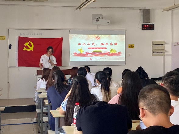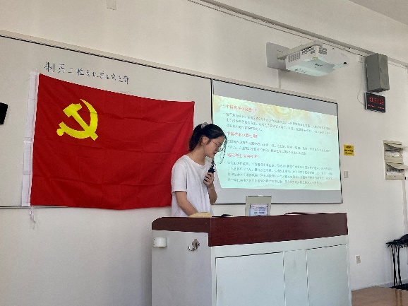 最后,员工党员倪懿凤同志将新生入党启蒙和 “烈士纪念日”、国庆日党史学习教育相结合,通过漫画和视频的形式向大家再现了1949年建国和1950年开始的抗美援朝战争,通过学习历史,缅怀先烈,鼓励新时代的青年适应时代发展的要求,正确认识祖国的历史和现实,增强爱国的情感和振兴祖国的责任感,树立民族自尊心与自信心,弘扬伟大的中华民族精神,高举爱国旗帜,锐意进取,自强不息,艰苦奋斗,顽强拼搏,真正把爱国之志变成报国之行。