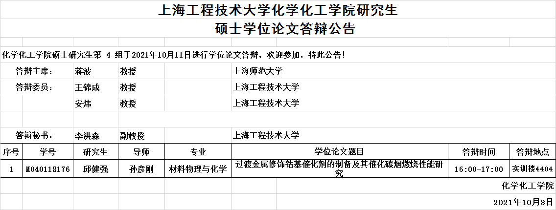 威廉希尔官网研究生硕士学位论文10月11日答辩公告