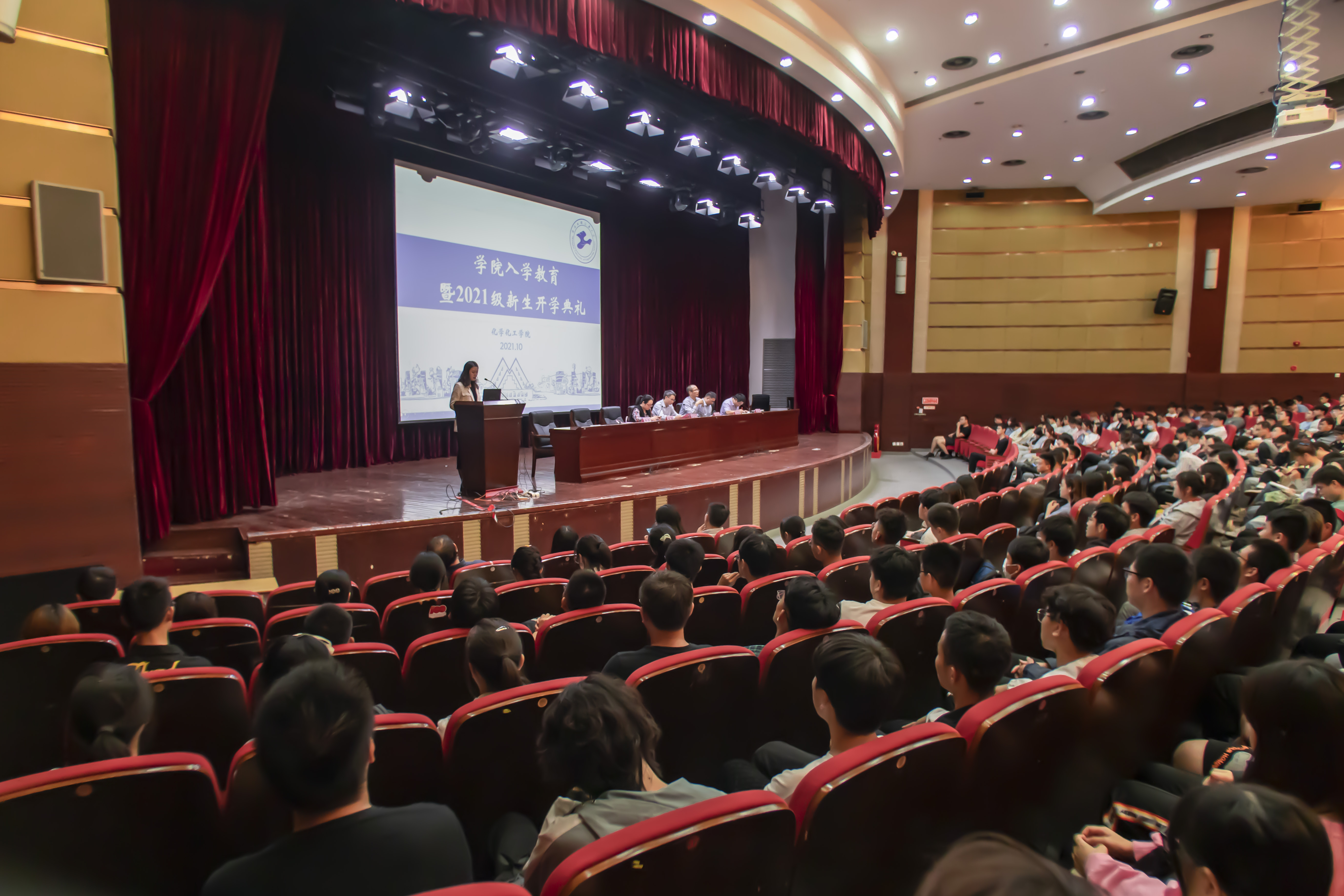 10月12日晚,威廉希尔官网2021级新生入学教育在图文信息中心志宏堂举行。公司党委书记宋勤健,经理饶品华,党委副书记秦颖,副经理陆杰、李亚、王金果及各职能办公室主任、新生导师代表、各系辅导员出席典礼,2021级全体本科生及研究生参加了典礼。开学典礼由秦颖副书记主持。