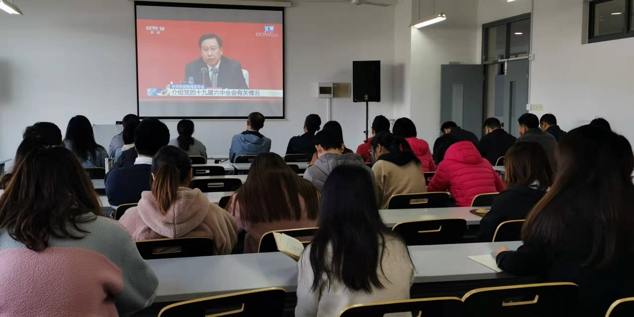 11月8日至11日,中国共产党第十九届中央委员会第六次全体会议在北京召开。这次全会是在我们党百年华诞的重要时刻,在“两个一百年”奋斗目标历史交汇关键节点上召开的一次重要会议,为更好地学习和领会十九届六中全会精神,11月12日上午,化学化工公司党委组织师生党员收看党的十九届六中全会精神新闻发布会。