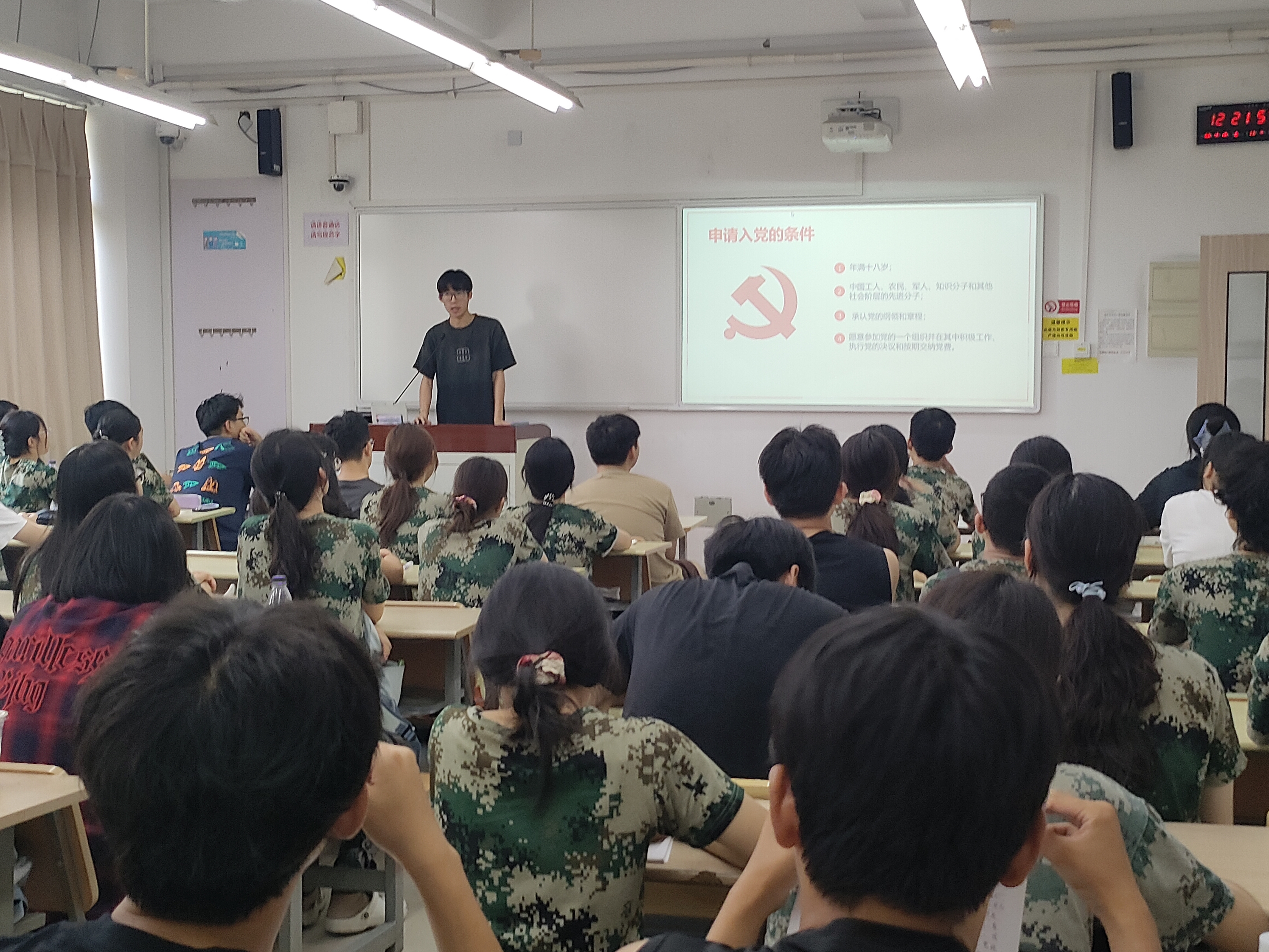研究生党员张赵梓乐以“青年老员工为什么要申请入党”为核心,结合自身科研攻关、志愿服务的经历,从“信仰传承”“时代使命”“成长赋能”三个维度展开分享,阐释了入党不仅是身份的象征,更是“为人民服务”的责任担当,鼓励新生将个人理想融入国家生态环境保护事业,在奋斗中实现人生价值。本科生党员张皓舜聚焦“如何撰写入党申请书”,从规范格式、思想内涵、情感表达三个方面进行细致讲解。他结合入党申请书撰写中的常见问题,指导新生如何梳理个人成长经历、表达入党意愿,强调入党申请书需“以真心写真情,以真情表决心”,避免空话套话。