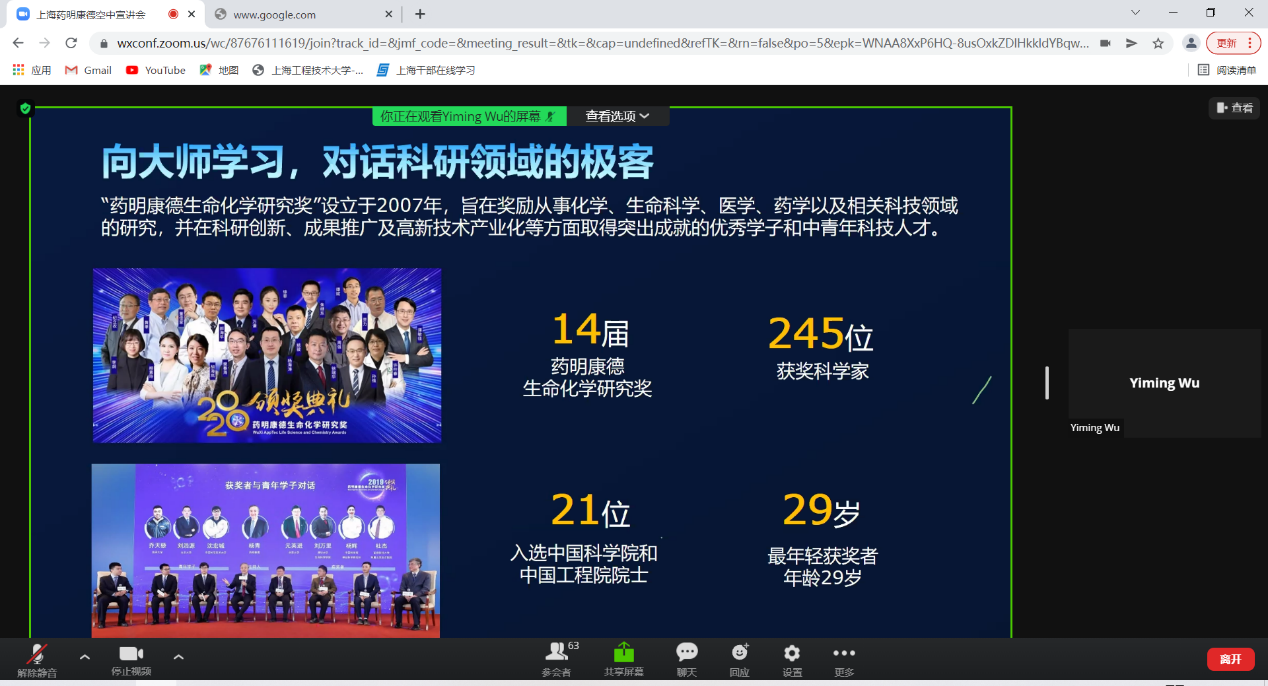 同时,上海美迪西生物医药股份有限公司和药明康德分别在线上面向威廉希尔官网22届毕业生开展宣讲会。两家招聘单位分别通过视频展示、PPT讲解的方式对公司介绍、员工福利、岗位需求、晋升机会、应聘要求等方面进行了详细讲解,极大程度上调动了拥有就业意向的和备考研究生的同学们的兴趣。