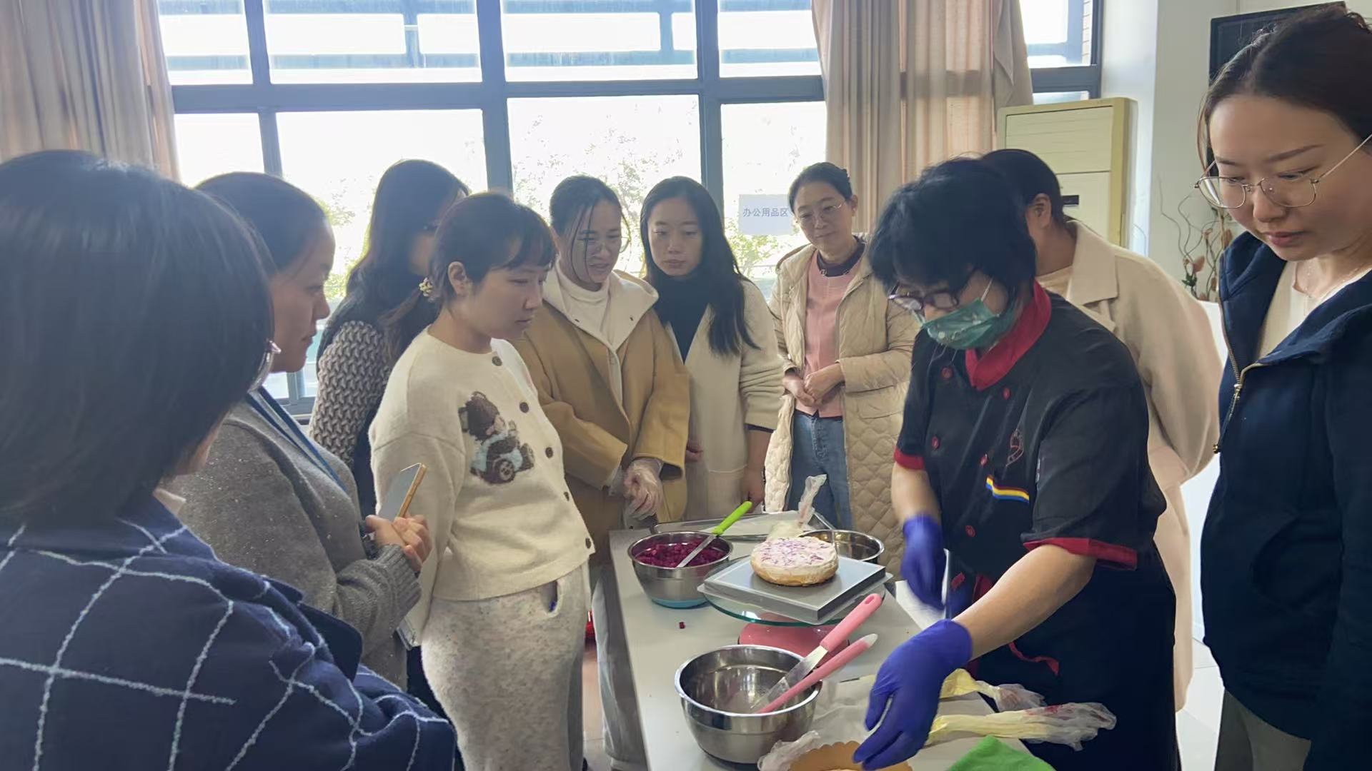 专业烘焙师现场指导,女教师们化身“甜点师”。从称量配料、打发奶油到裱花装饰,大家分组协作,时而交流烘焙心得,时而互相帮助解决操作难题。实验室的严谨与烘焙的创意碰撞出别样火花:有小组设计“拉布布蛋糕”造型,将流行特色融入甜品;更有小组创作“五彩缤纷”糖霜图案。实训中心4418变身“甜蜜工坊”,笑声与赞叹声此起彼伏。