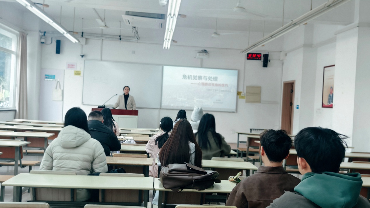 心理辅导员张燕黎老师作为主讲人开展专题培训。她从心理危机的定义、类型及高校员工心理危机的常见诱因入手,系统讲解了心理危机的核心识别要点。针对心理委员的工作场景,张老师重点梳理了需要高度关注的两类信号——行为层面的异常改变和情绪层面的持续波动,并通过具象化的案例帮助委员们建立直观认知。在实践指导环节,张老师结合心理工作伦理,传授了“倾听共情、积极关注、适度陪伴、及时转介”的四步沟通技巧,明确了心理委员的工作边界和应急处理流程。