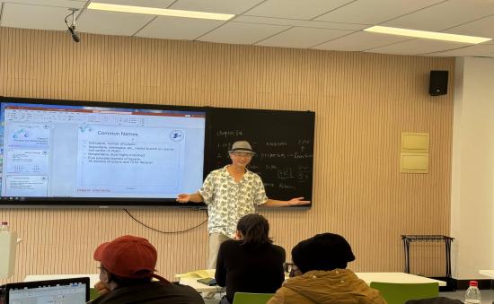 访问期间,Ming教授为公司药物化学专业(国际班)讲授 《Organic Chemistry》课程,结合自身教学与研究经历,以生动活泼的语言和丰富的案例,向同学介绍了有机化学课程的重难点及知识构架。Ming教授幽默风趣的授课风格,极大地激发了同学们的专业学习兴趣与探索未知的热情。课堂上,师生互动积极气氛融洽,展现了公司学子勤学好问的优良风貌。