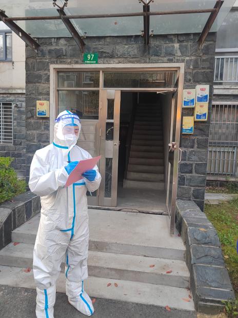 小区封控之初,张晓普老师积极落实市委组织部关于党员“双报到”的工作要求,第一时间到居住地居委会报道、亮明身份,接受居委会党组织统一安排与指挥,与居委会党员干部和群众并肩作战,下沉到小区担任楼栋志愿者。
