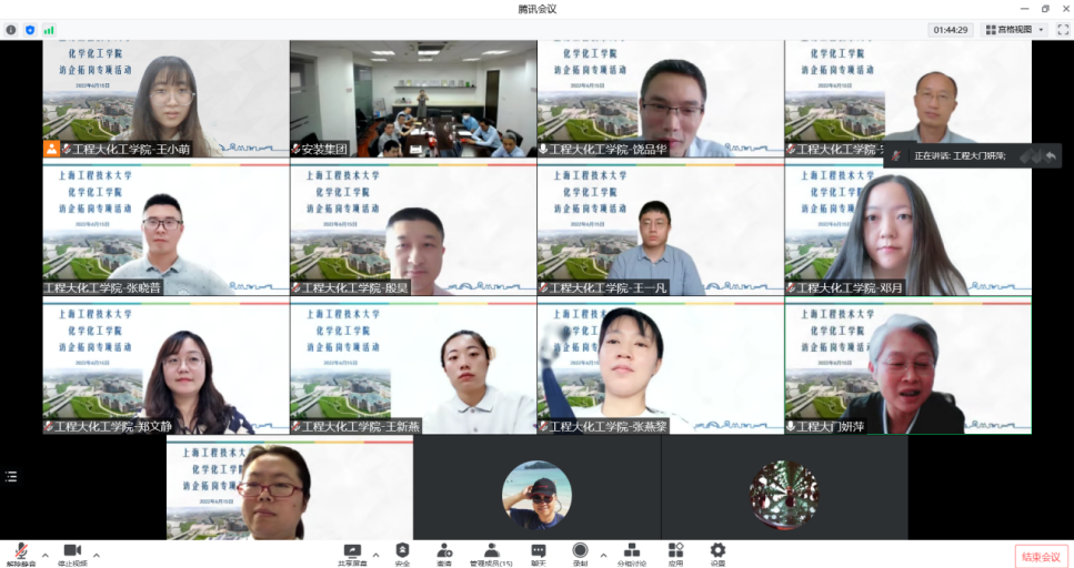 饶品华经理代表公司介绍了公司的发展概况,从研究生、本科生专业到专业课程建设,从公司团队队伍力量到科研设备配备,从员工国际交流、联合培养到毕业生就业工作,使用人单位对公司有了全面的了解。公司2021届毕业生、上海市安装工程集团有限公司设计研究院员工代表肖竹天交流了入职以来的感想,表达了对母校、公司四年培养的感恩和对单位提供个人发展机会的感谢,表示愿意成为母校和单位进一步加强沟通合作的桥梁。在交流环节,双方还就公司与研究院共同关注的员工综合素质培养与产学研合作问题进行了进一步的交流和沟通。