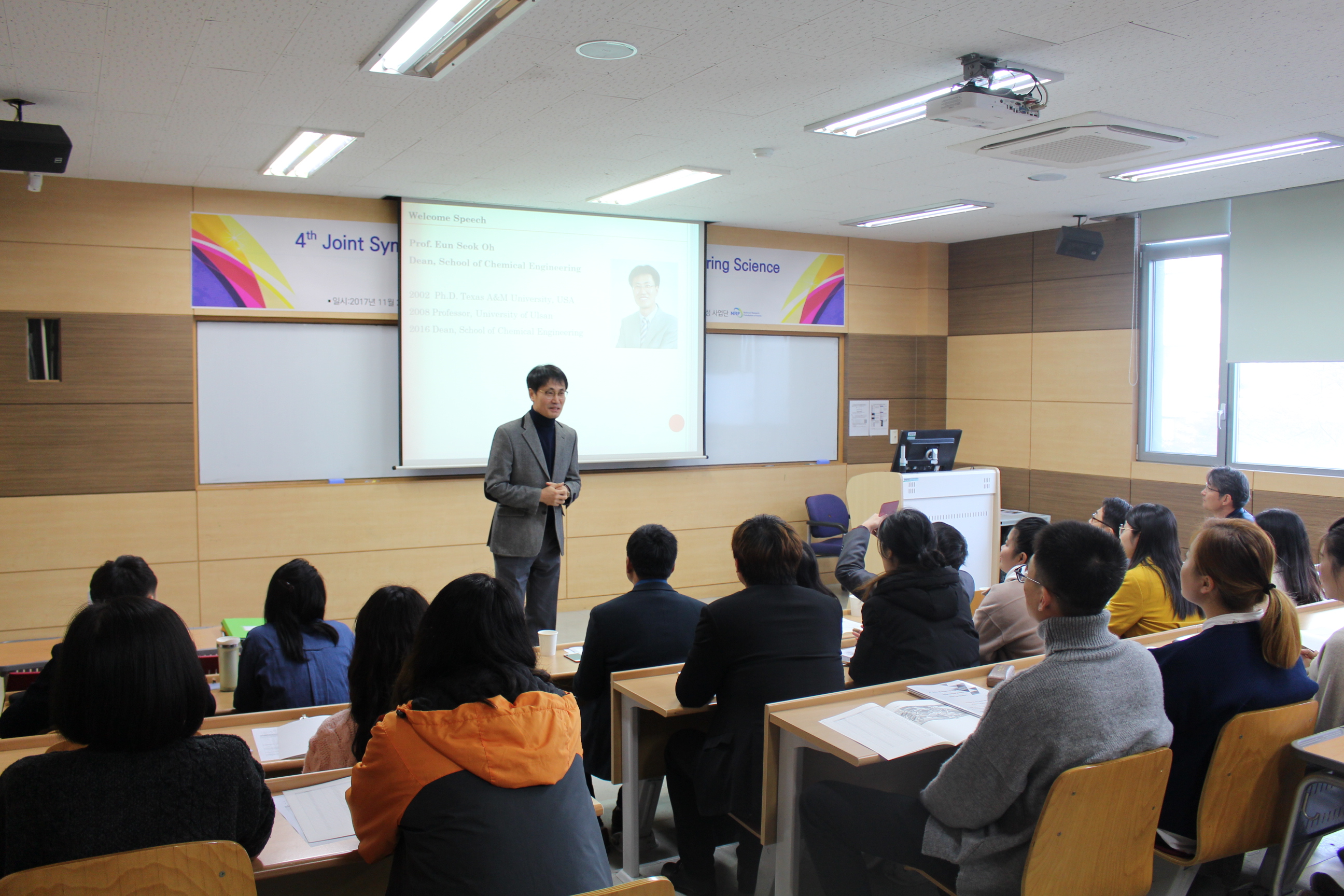 11月28日,“第四届中韩SUES&UOU化学化工国际学术研讨会”在韩国蔚山大学召开,本次研讨会由威廉希尔官网与韩国蔚山大学化学与生物化学工程公司联合举办。威廉希尔官网副经理王锦成教授、甘文君教授、王润锴老师及5名员工代表出席。韩国蔚山大学化学与生物化学工程公司经理Oh Eun Suok教授、Jin Suk Chung教授、Yoo Ik Keun教授以及师生代表出席了本次活动。