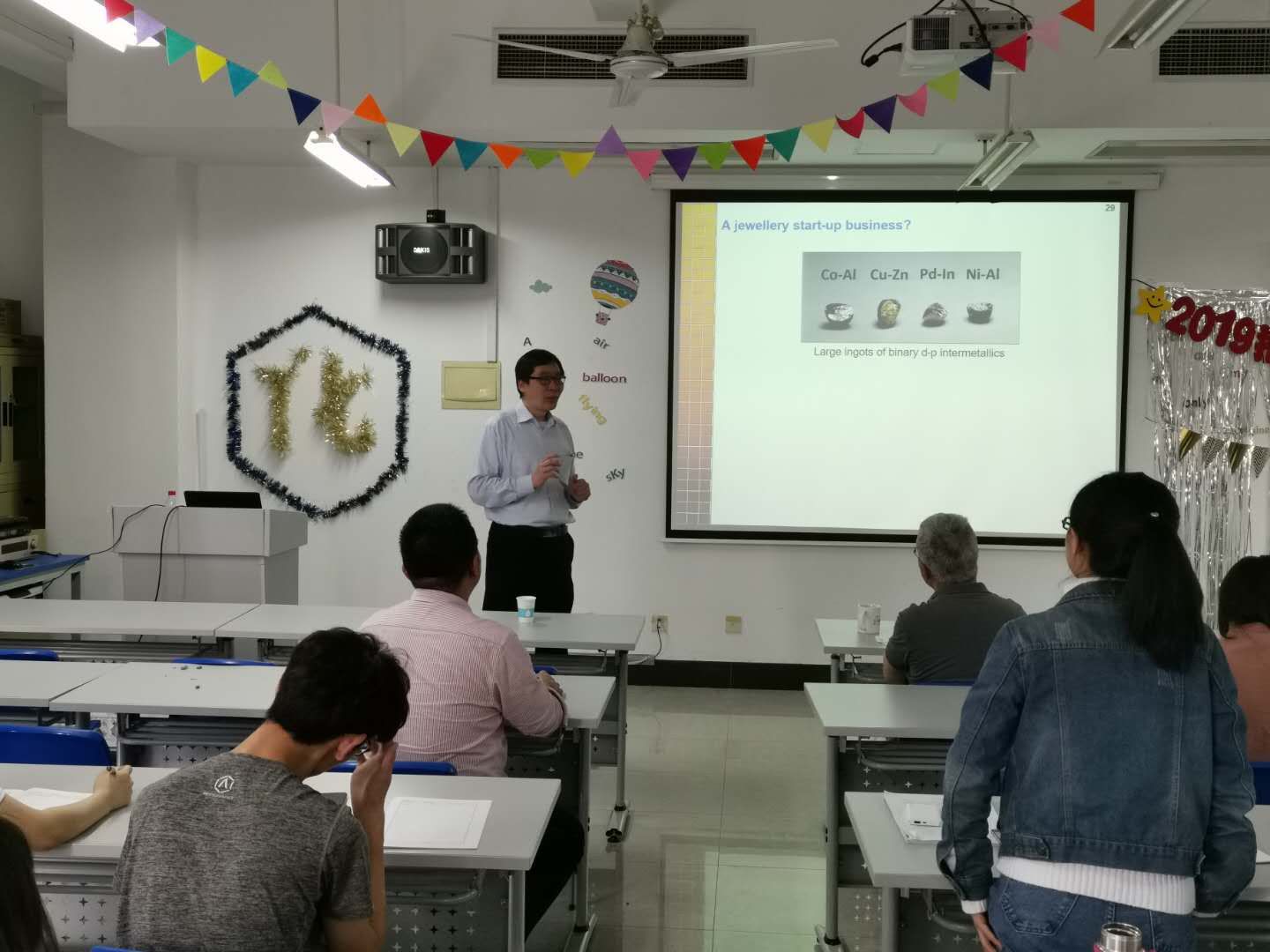 2019529日上午10点,加拿大阿尔伯塔大学Arthur Mar教授应邀来威廉希尔官网作题为“Coloured Intermetallics”学术报告,报告由梅大江副教授主持,公司多位老师及研究生参加了本次报告会。Arthur Mar教授课题组合成了金黄色和粉红色的Cu2LiM (M = Ga, Al)化合物,并利用X射线衍射、紫外可见光谱和固体核磁共振谱对这些金属间化合物进行了表征。Arthur Mar教授介绍大多数有色金属间化合物都具有高对称性结构,组成化合物元素比例的微小偏差都将导致化合物颜色发生显著变化。Arthur Mar教授的报告结束后,老师和同学们提出了很多问题,Arthur Mar对这些问题一一做了解答,本次报告会在大家的热烈掌声中圆满结束。