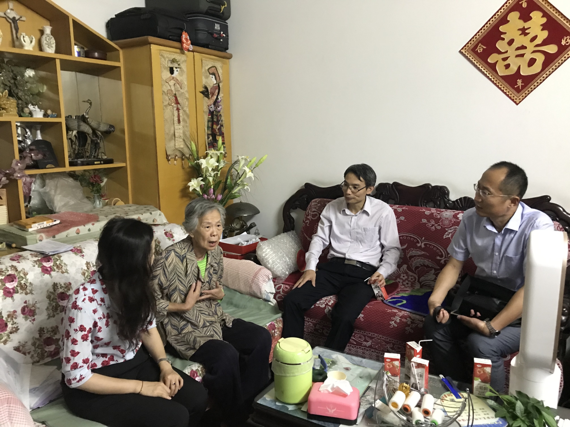 座谈会后,在宋书记和饶经理的带领下,公司相关人员前往走访慰问了患病的退休老同志朱毓芷,关心慰问老人的生活和身体状况,并为她送去来自公司的关爱与温暖。
