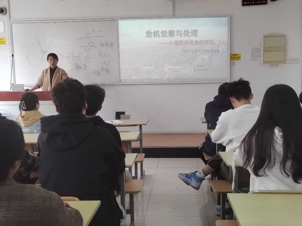 张燕黎开展了主题为《心理委员视角下危机察觉与处理技巧》的培训内容,介绍了什么是心理危机,危机出现的信号辨识以及出现危机如何处理和干预。同时希望各位心理委员肩负起责任,提高心理危机干预能力,共同守护同学们的心理健康。此外,张老师还详细介绍了心理剧大赛、心理委员大赛、心理读书会等几个心理相关的活动,鼓励大家积极参与,展现心理委员的魅力与才华。