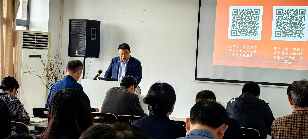 为严格贯彻落实公司党委全面从严治党工作会议精神和工作要求,部署公司2023年全面从严治党工作任务,4月19日,化学化工公司党委在实训楼4418会议室召开2023年全面从严治党工作会议。公司党政班子成员、党支部书记、系室主任、教师党员等参加会议,会议由公司党委书记宋勤健主持。