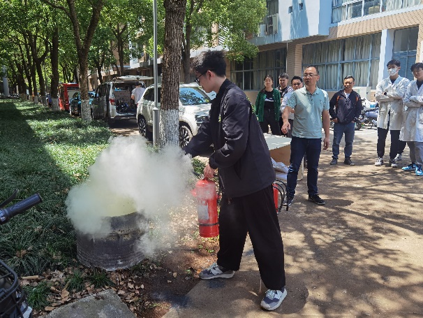 逃生演练结束后,保卫处消防科吴挺老师对员工进行了灭火器、灭火毯实操培训,并现场演示了灭火器和灭火毯的使用,在场的员工们在学习与演练的过程中进一步加深了对消防器材使用方法的理解与认识,并掌握了灭火器和灭火毯的使用技能。