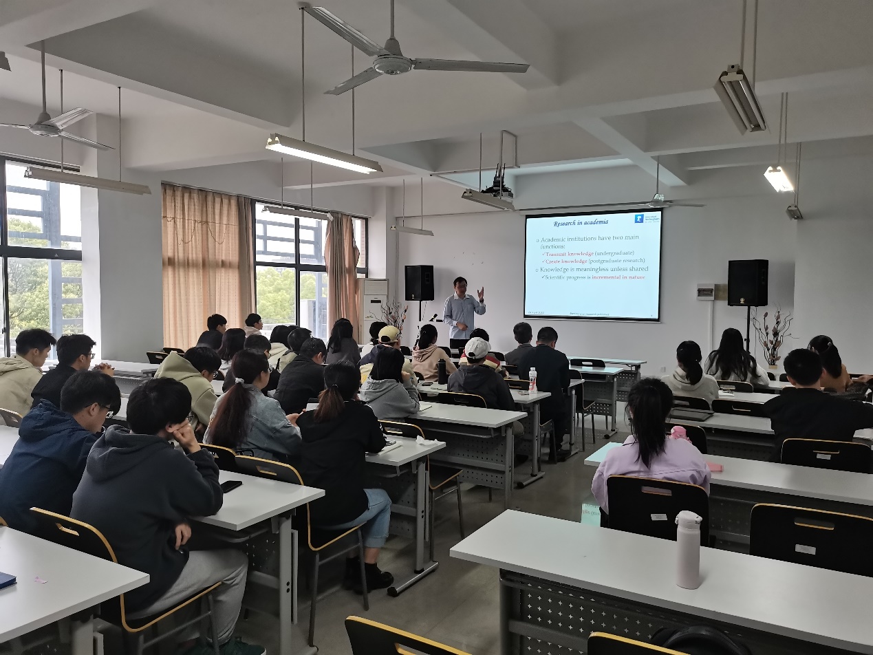 同日,Foo教授在实训楼4418教室为公司师生作了题为“成功国际学者的七个关键”和“学术写作——期刊编辑视角”两场精彩的讲座。Foo教授鼓励青年学者要独立思考,构建和发展自己的学术特长,积极与同行交流以拓宽科研思路和合作渠道。Foo教授还回答了现师生有关规划科研方向、寻找合作者、撰写英语论文、回复审稿意见等问题。
