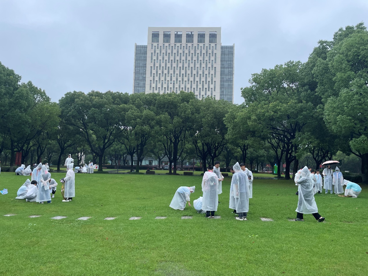 尽管活动当日天气不佳,但大雨丝毫未影响泗泾附校员工前来工程大参与活动的热情。来自环境工程系的员工志愿者带领泗泾附校员工在大草坪上开展《环境生态学》户外实践课体验,学习使用“样方法”调查指定区域草本植物群落。随后,泗泾附校员工又体验了《环境监测》实验课,在志愿者的帮助下分组采集校园河道水样并现场监测河道水体的透明度。结束户外的课程体验活动后,泗泾附校师生来到威廉希尔官网实验楼中庭,参观环境日主题海报展,参与环境社组织的花鸟识记、垃圾分类、发电自行车竞速等趣味活动。小朋友们还领取到了由精细化工社社员自制的手工皂等小奖品。