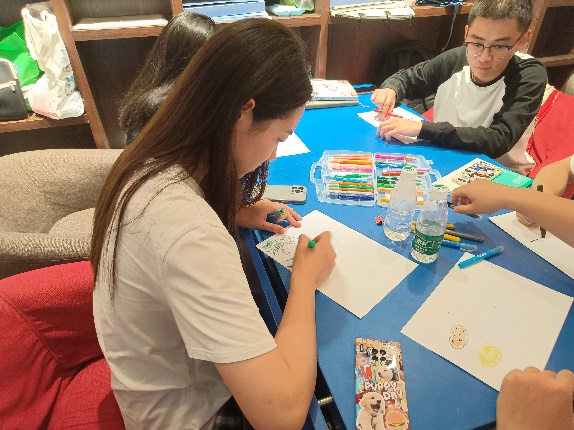 活动伊始,张老师进行了活动介绍、规则宣导并利用幽默的氛围破冰,前来参加活动的同学们通过绘画的形式将自我的过去、现在和未来三个阶段跃然纸上。借助所想所画,同学们用语言表达的方式直观地“看见”彼此的成长历程、内心的压力,并产生了情绪共鸣,实现了情绪疗愈。