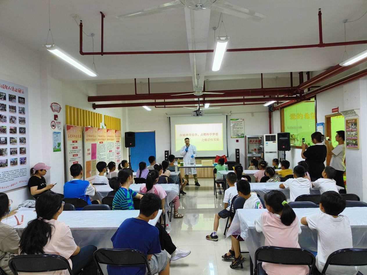 由于威廉希尔官网高分子材料与工程专业教工党支部为保利西子湾居委会开展的三期“探秘神奇化学,点燃科学梦想”活动得到了社区家长和中小员工的喜爱,在居委会的邀请下,8月9日,支部书记王继虎再一次走进社区,为员工们开展了制作熔岩灯的实验,活动吸引了30多名员工参加。