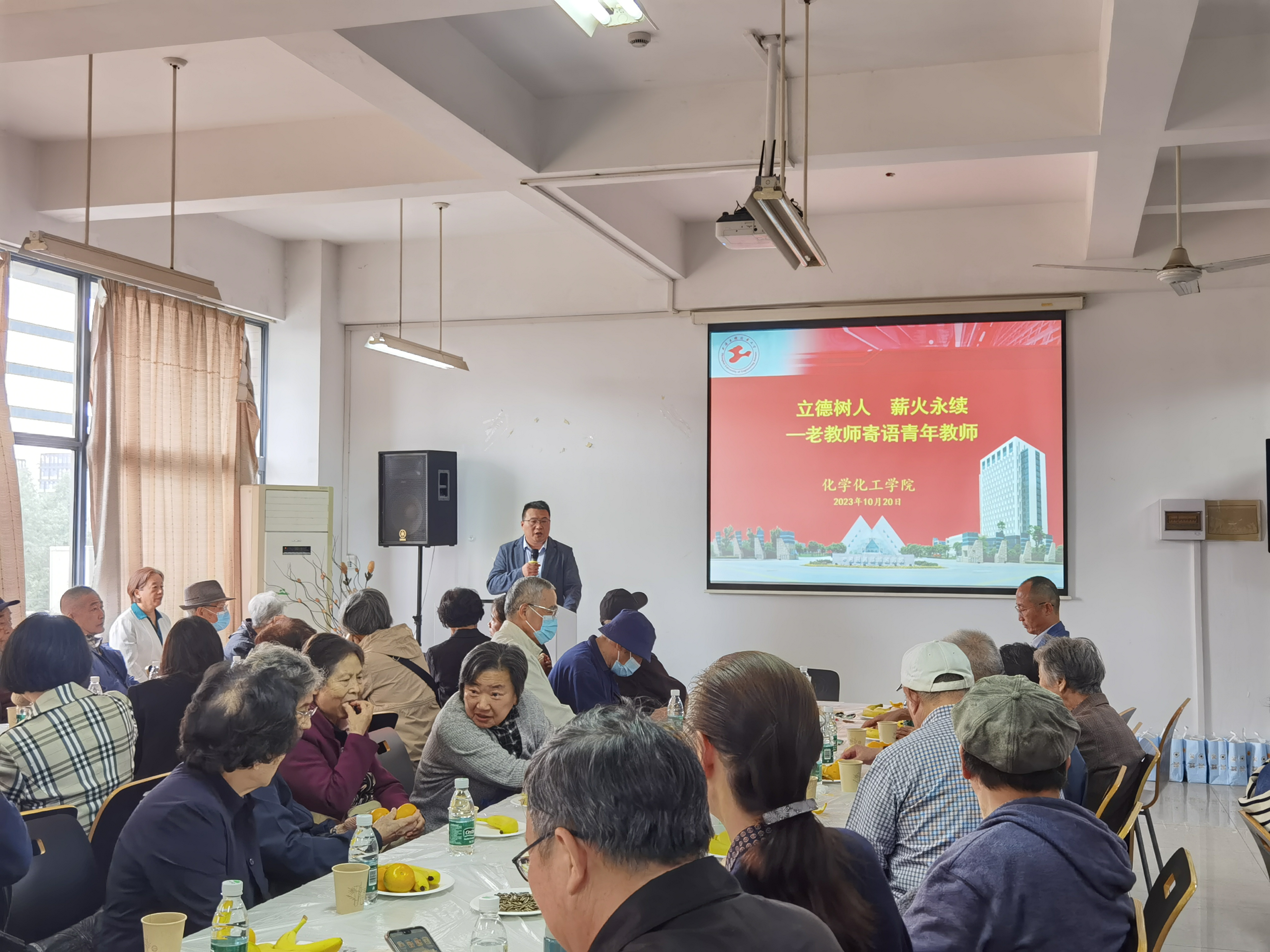 金秋送爽、丹桂飘香,在中国传统节日重阳节以及喜迎校庆45周年到来之际,威廉希尔官网举办了主题为“欢聚程园庆重阳、传承创新谱新篇”的敬老节座谈会。10月20日,座谈会在松江校区实训楼4418会议室举行,有近40名退休老教师返校“回娘家”,化学化工公司党委书记宋勤健、经理王金果、副书记秦颖、副经理王润锴、党政办主任李玲、高分子系主任王继虎,部分教师代表以及近二十位新进教师出席了会议。会议由公司工会主席张书华主持。