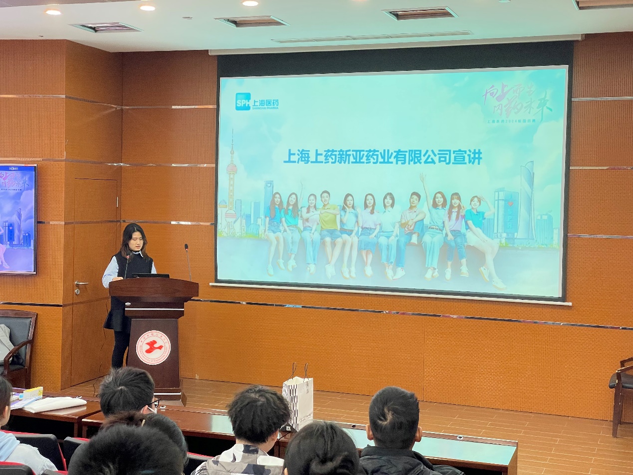 本次招聘会分为两大部分——宣讲部分和招聘部分。宣讲会上,上药集团主宣讲人首先介绍了集团的发展历程、业务板块及企业理念。上药集团作为中国领先的医药企业,秉承着创新、诚信、合作、包容、责任的核心价值观,致力于持之以恒提升民众的健康生活品质,打造具有行业美誉度的领先品牌药制造商和健康领域服务商。同时集团也重视社会责任,积极参与公共卫生事业,推动中国医药行业的持续发展。随后,上海上药新亚药业有限公司作为附属公司代表向同学们详细介绍公司发展现状,并向在场同学抛出橄榄枝,希望双方携手成长。最后员工代表作为校园大使向毕业生介绍了工作心得,鼓励大家勇往直前。