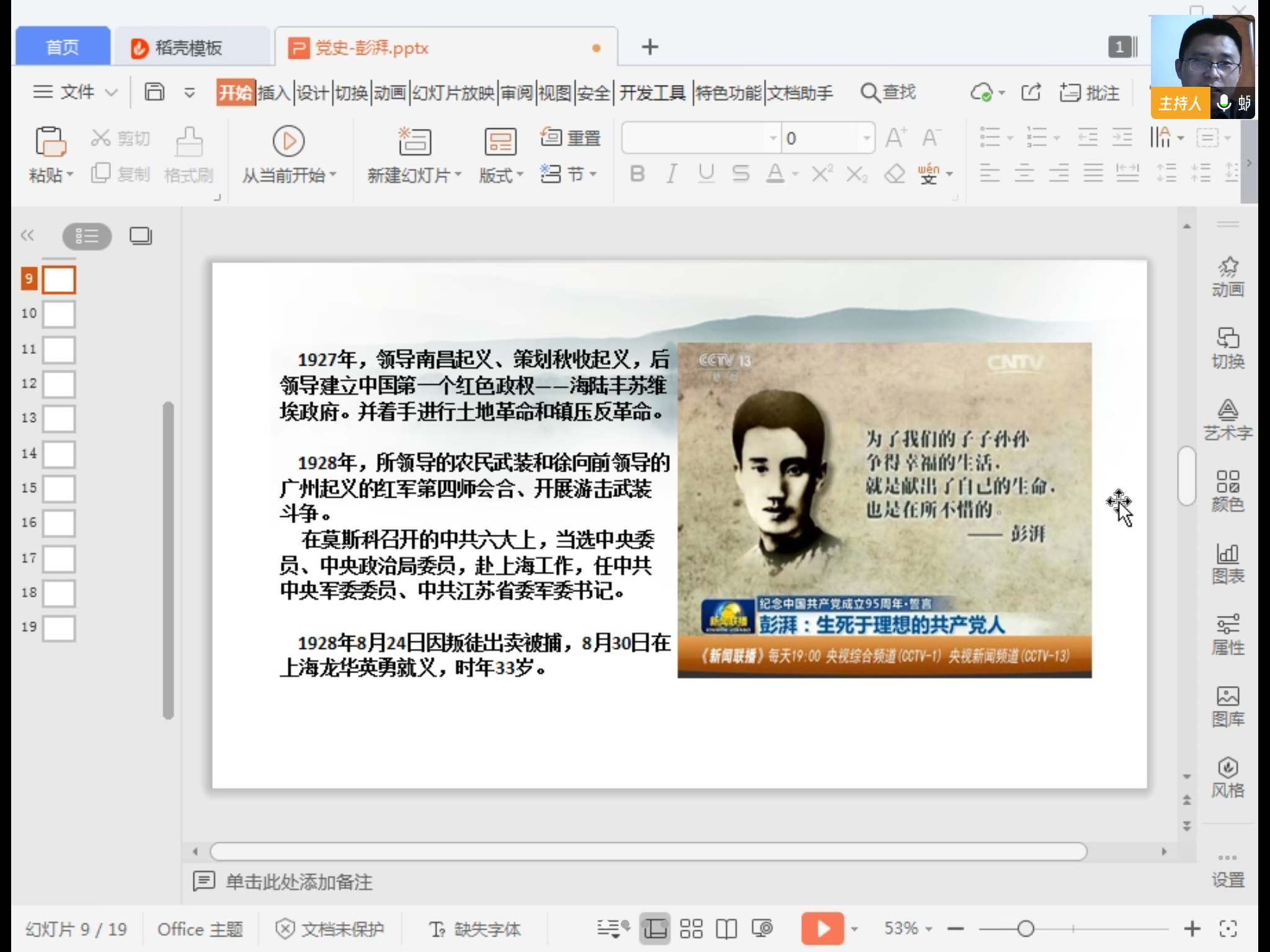 了解党和国家历史上的重要人物是学党史的重要内容之一,张老师选取了被毛泽东主席称为“农民运动大王”的中国共产党早期农民运动领导人彭湃作为解读对象。从生活优越的大地主家公子到坚定的共产主义战士、从创办社会主义研究社到建立了海陆丰苏维埃政权、从组建“六人农会”到开办农民运动讲习所、从参与领导南昌起义到策划秋收起义,课堂上彭湃短暂却不平凡的一生吸引了同学们的兴趣,也引起了同学们对信仰的深度思考。员工党员潘晓樊谈到感想时说“是对共产主义的强烈信仰促使彭湃做出了一番轰轰烈烈的革命事业,我们青年老员工党员要继承彭湃先烈大无畏的革命斗争精神,积极投身于建设中国特色社会主义的事业之中。”入党积极分子庞庆龄在学习感悟中提到“彭湃前辈焚烧田契毁家纾难正是他坚定理想信念使然表现,他为理想无私奉献、慷慨就义的行为为我们当代青年员工树立了榜样,也树立了精神的丰碑,我们应以功成不必在我的精神境界和功成必定有我的历史担当,承担起历史使命和时代重任。”