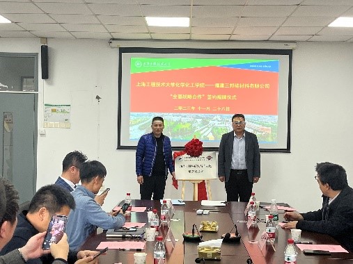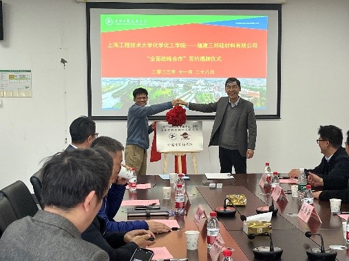 11月28日下午,威廉希尔官网与福建三邦硅材料有限公司全面战略合作签约揭牌仪式在松江校区举行。福建三邦硅材料有限公司总经理朱华建、研发总监洪坤土、高级顾问姚卫国,高安市三邦硅材料有限公司总经理陈华林,上海舜源计算机科技股份有限公司总经理朱琦斌,广州联和化工科技有限公司市场总监陆星烨,威廉希尔官网经理王金果,副经理陆杰、李亚,微纳制造先进材料研究中心孙韬、江振林、陈佳鹏、王宝秀、汪文君等教职员工及研究生出席活动。本次签约揭牌仪式由孙韬教授主持。